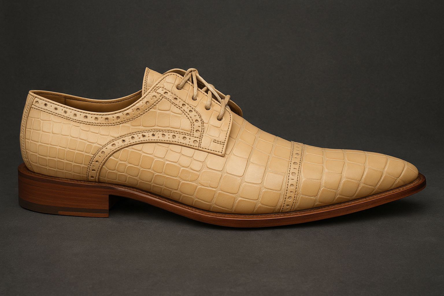 Step into elegance with our handcrafted beige crocodile embossed leather Oxford shoes for men. Designed for the modern gentleman, these luxury dress shoes feature intricate brogue detailing, high-quality leather, and a polished finish perfect for weddings, formal events, and upscale everyday wear.
