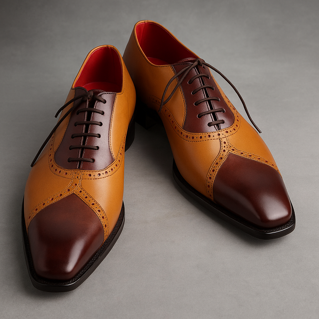 Step into timeless elegance with our handcrafted two-tone leather Oxford shoes, designed for the modern gentleman who values class and comfort. Made with premium quality genuine leather in a striking tan and dark brown combination, these luxury brogue shoes offer a perfect balance of sophistication and durability.